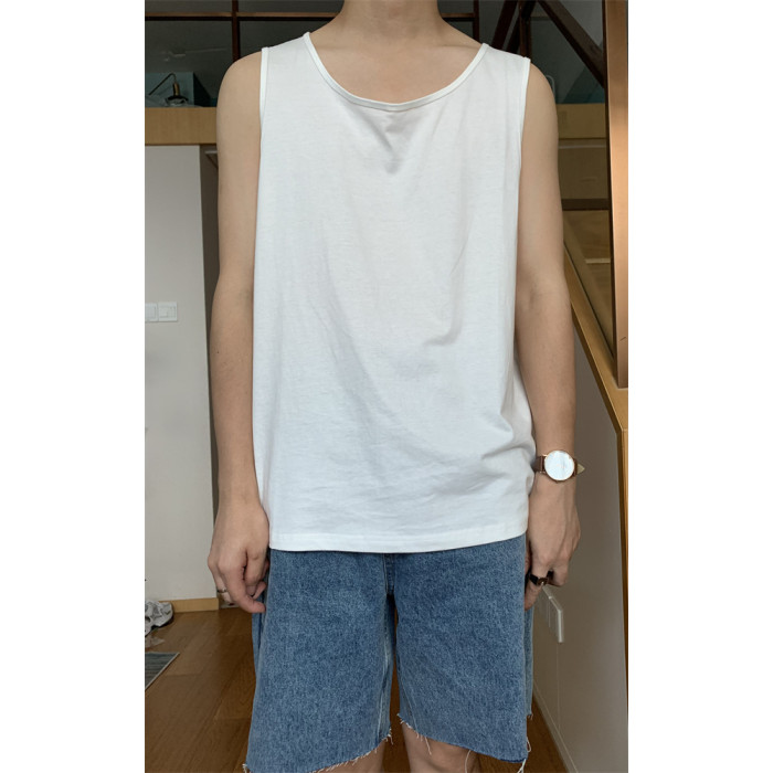方人也要韓版無袖背心男寬松汗背心套頭休閒純色流行坎肩上衣