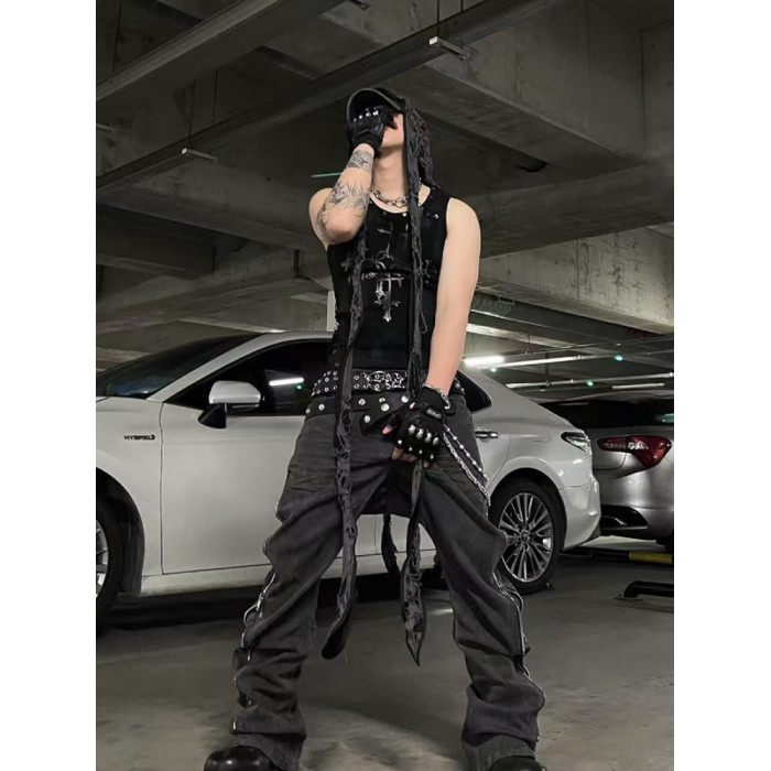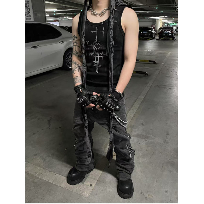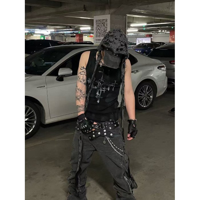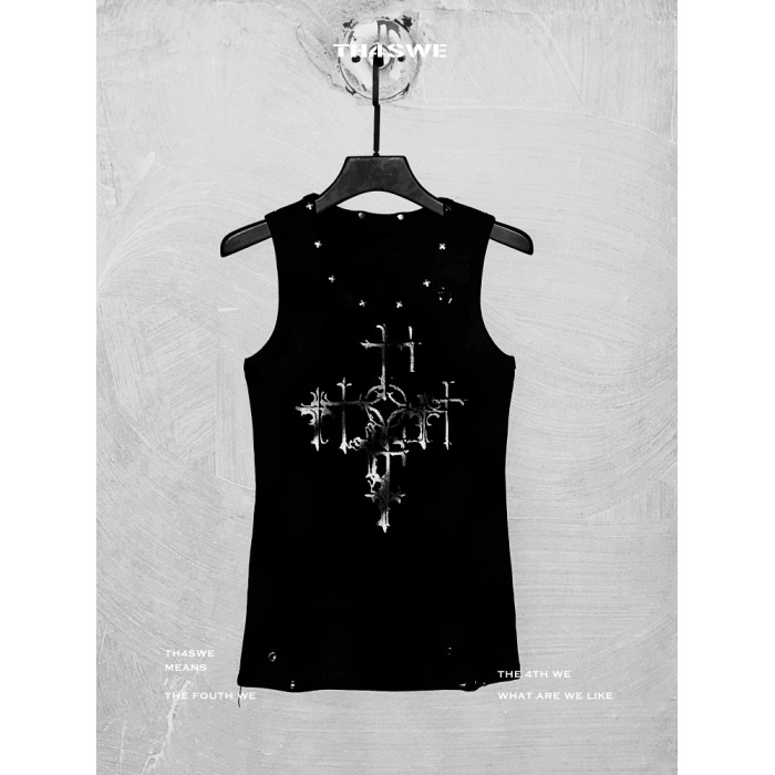 【明星同款】TH4SWE暗黑小衆 龐克復古哥特穿孔鉚釘無袖T恤 背心