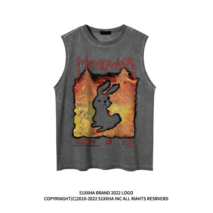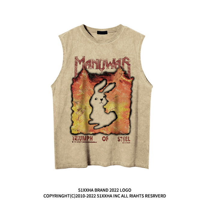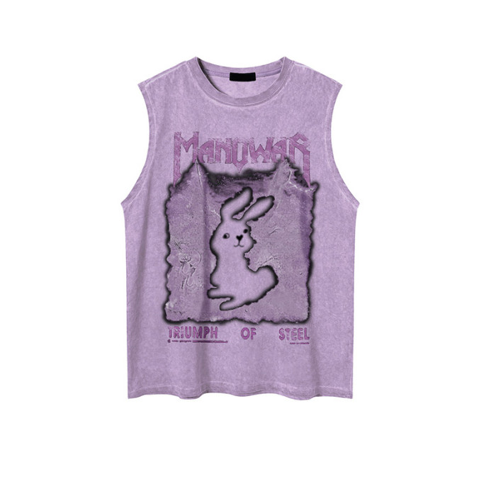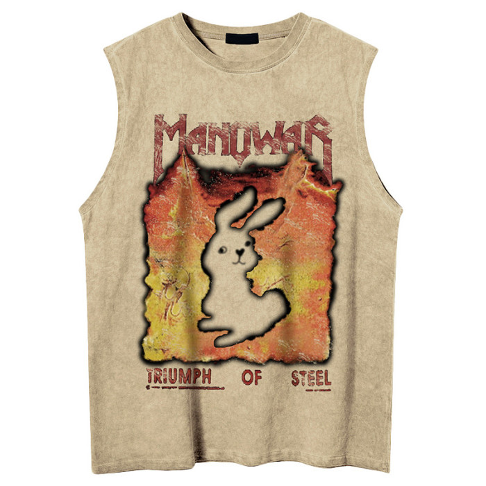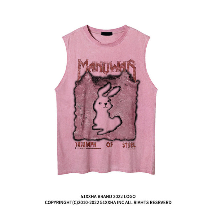 【美式復古】Ander Jurnal 古著兔子印花坎肩背心男款純棉無袖T恤