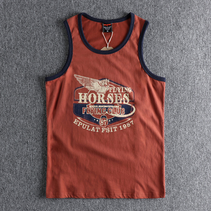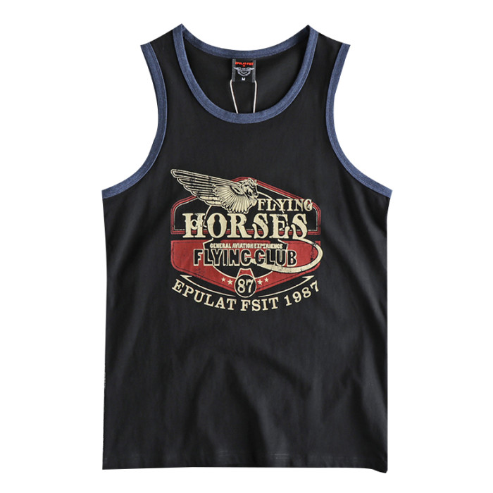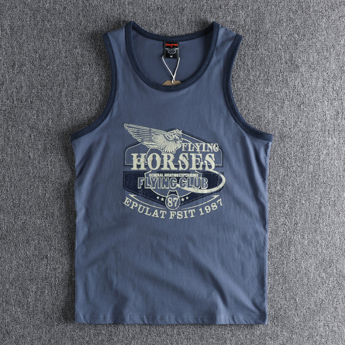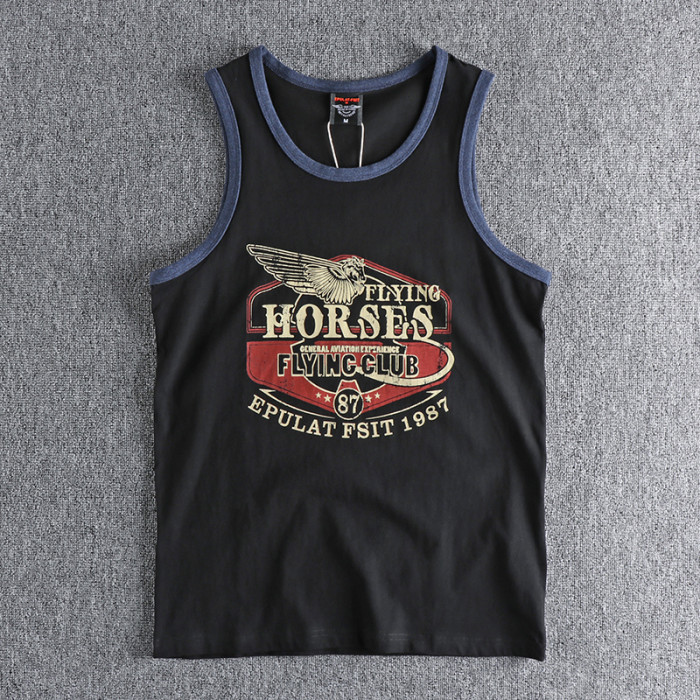 美式街頭復古翅膀字母圖案潮流背心 全棉舒適寬松運動吸汗T恤坎肩