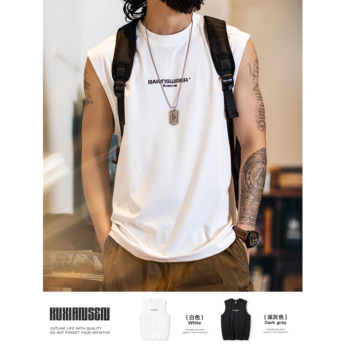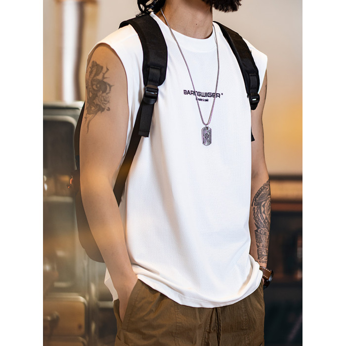 2025新款透氣網眼運動背心男款夏季美式印花跑步健身坎肩無袖t恤