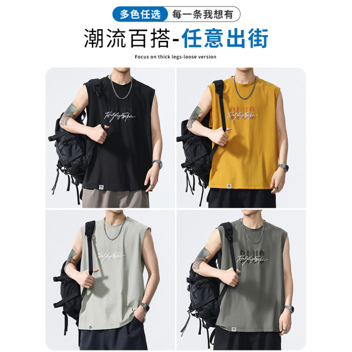 馬克華菲冰絲背心t恤男款寬松夏季美式潮牌運動無袖坎肩上衣服男