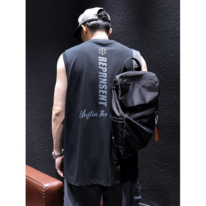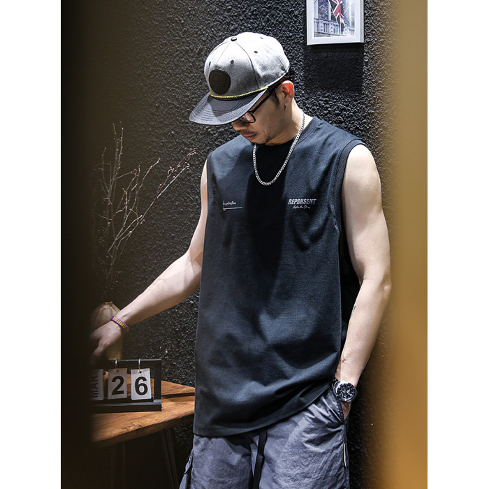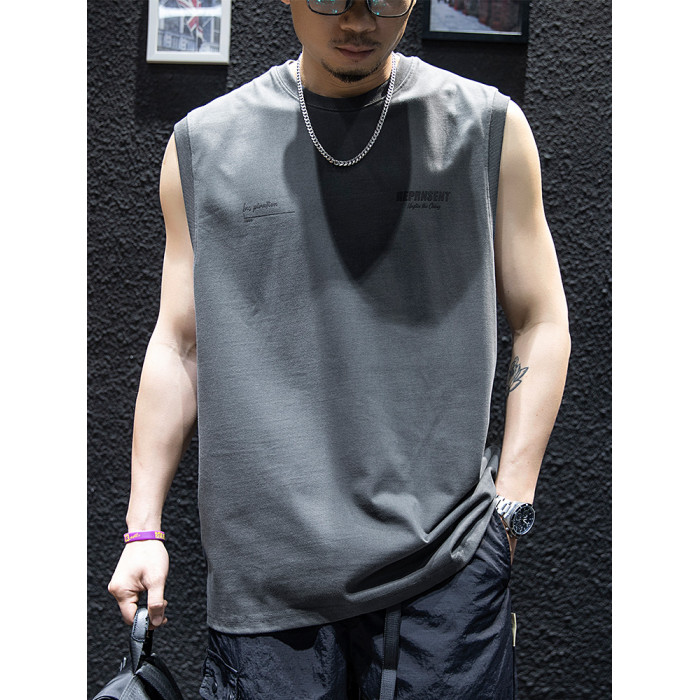 重磅美式復古無袖t恤背心男夏季寬松潮牌坎肩短袖男生休閒半袖潮