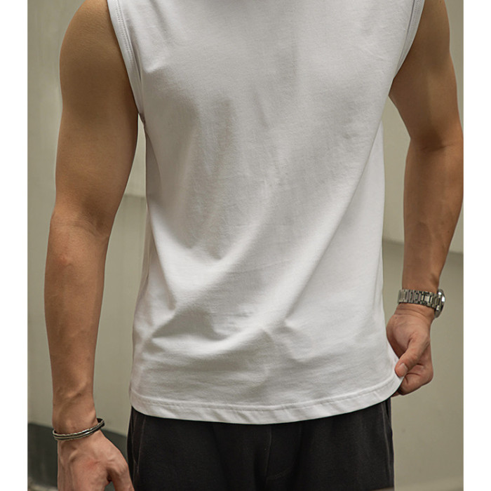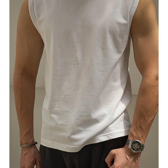 重磅無袖T恤背心純棉運動籃球打底衫男夏