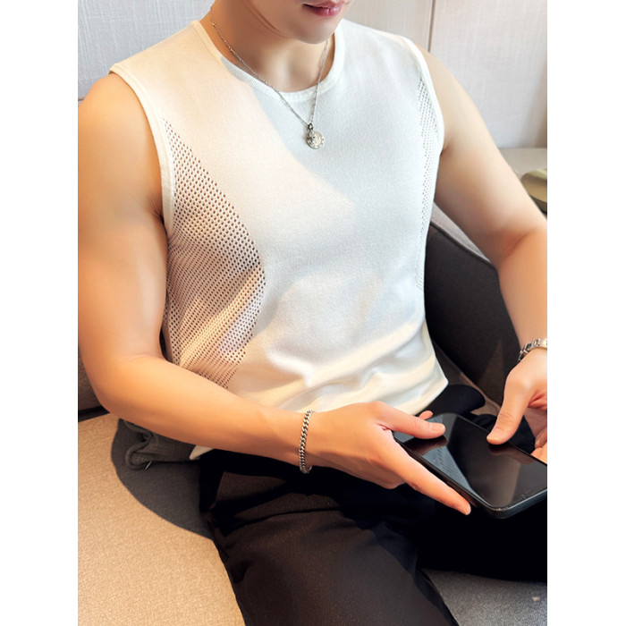 夏季2025新款冰絲男士背心健身工字打底坎肩潮流痞帥男款無袖t恤