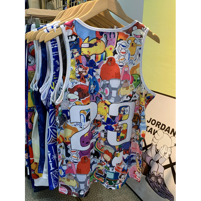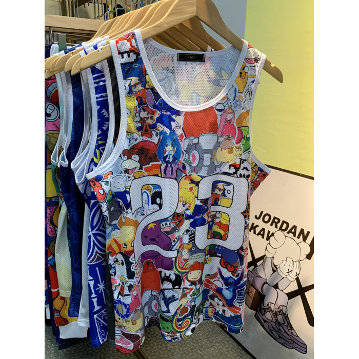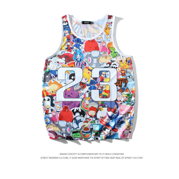 夏季網眼汗背心休閒情侶運動寬健身無袖坎肩短袖清涼印花圓領套頭