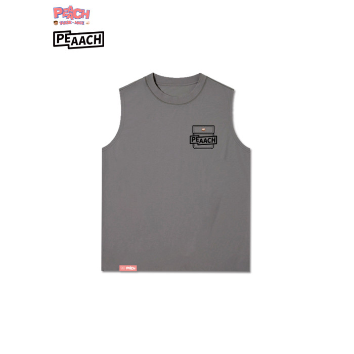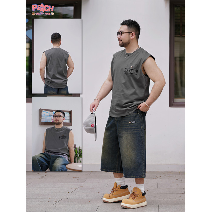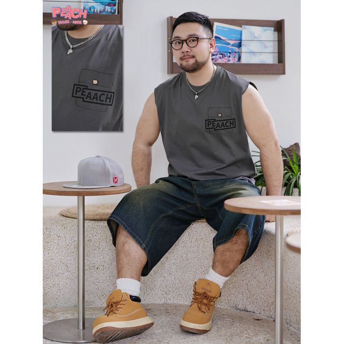 PEAACH夏季日系寬松大碼純棉圓領無袖背心美式簡約運動坎肩T恤男