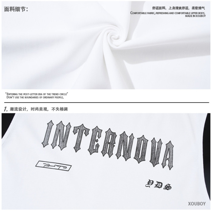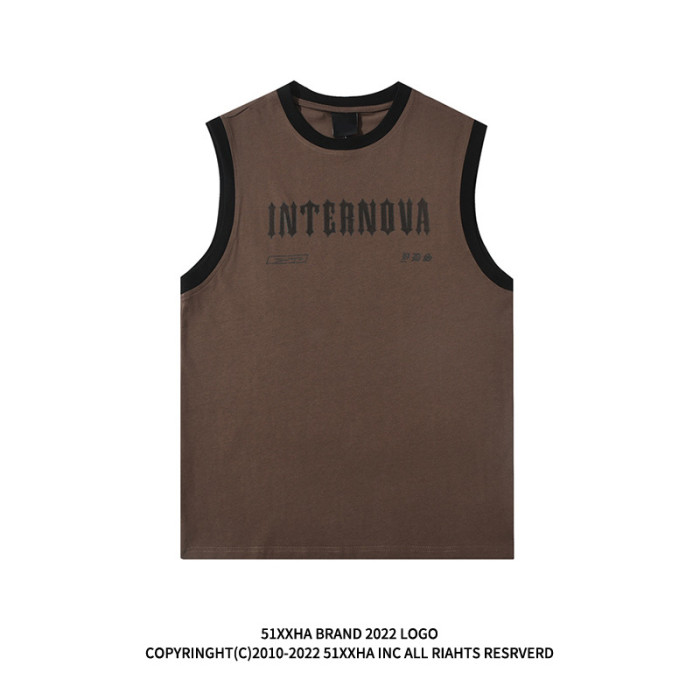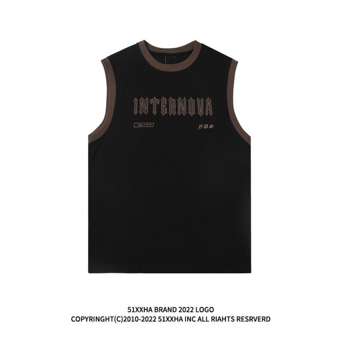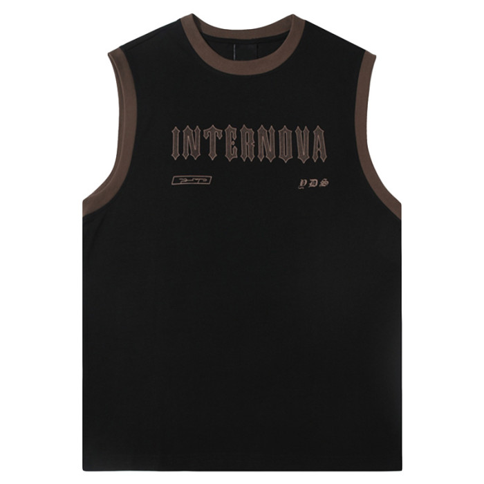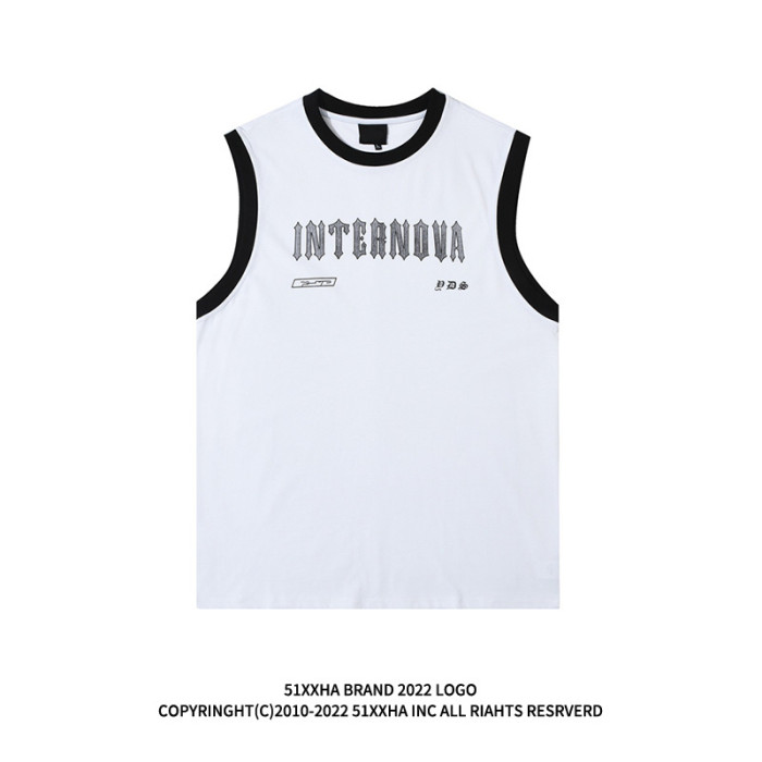 oldschool美式復古字母印花籃球運動背心男夏季hiphop寬松無袖T恤