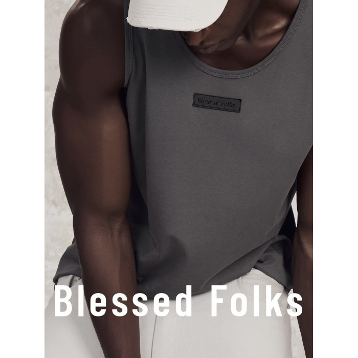Blessed Folks夏季重磅純棉膠標美式圓領休閒健身運動背心