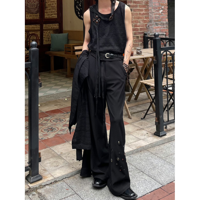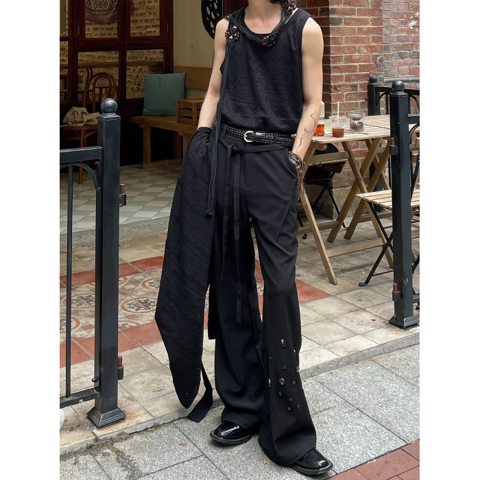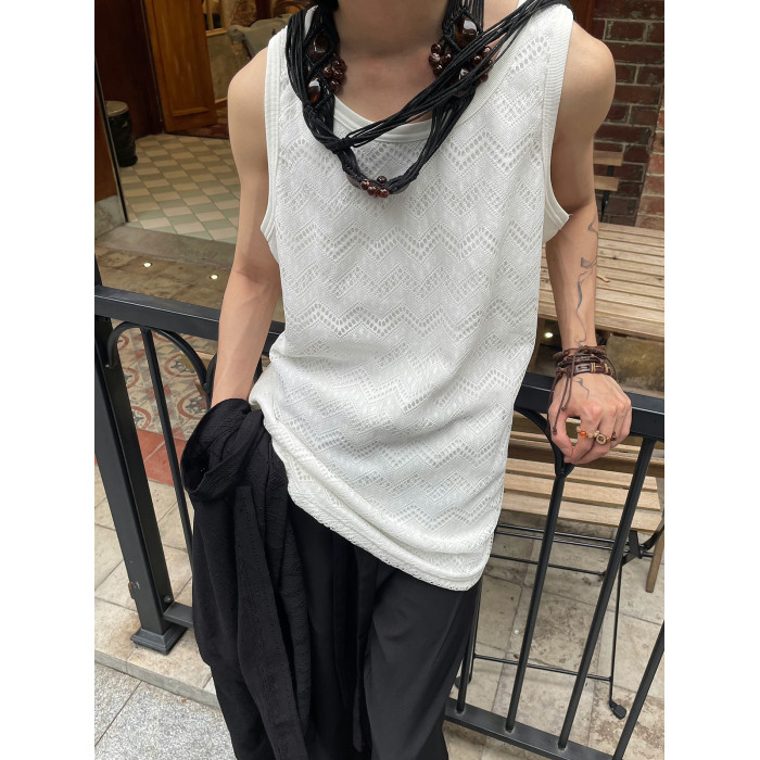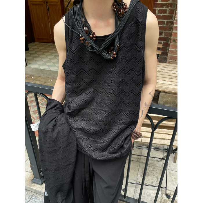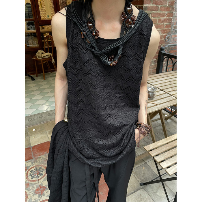 以休眠 復古山本耀司風夏季蕾絲貼布小衆設計感肌理感基礎款背心