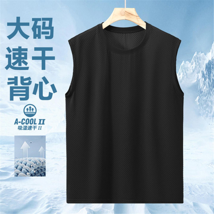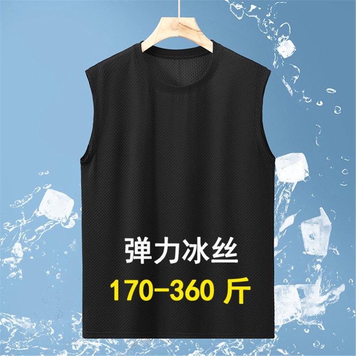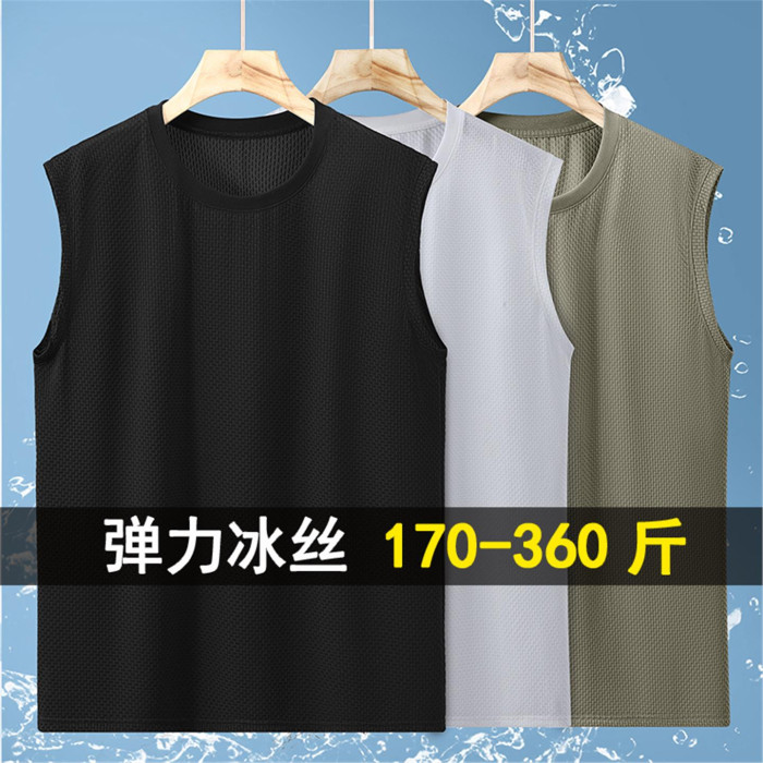 男士夏季新款冰絲無袖背心350斤大碼加肥加大胖子運動休閒潮坎肩