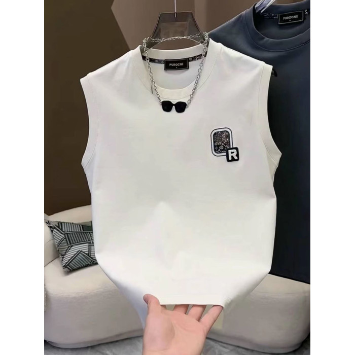 2025夏季新款潮牌字母印花無袖T恤男士時尚潮流純棉運動坎肩背心