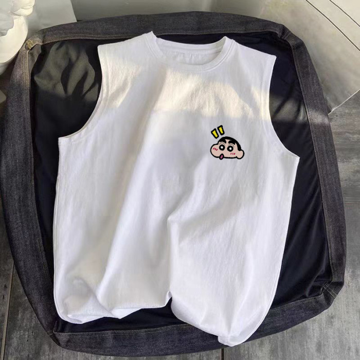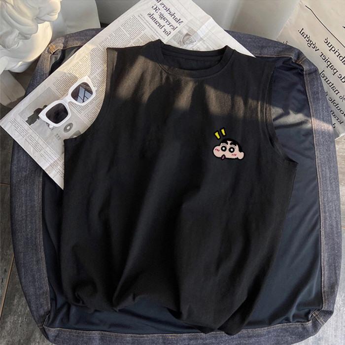 夏季ins潮流小新卡通潮牌無袖t恤寬松休閒百搭透氣220g純棉背心男