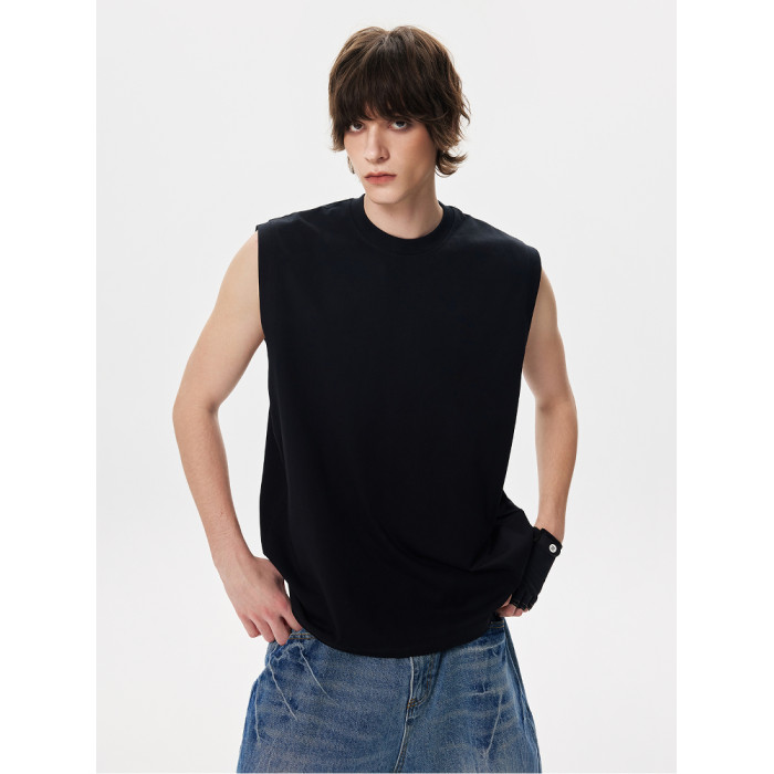 JIINOO索羅娜小領口背心夏季男女款無袖簡約時尚百搭寬松坎肩T恤