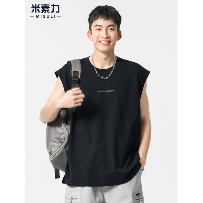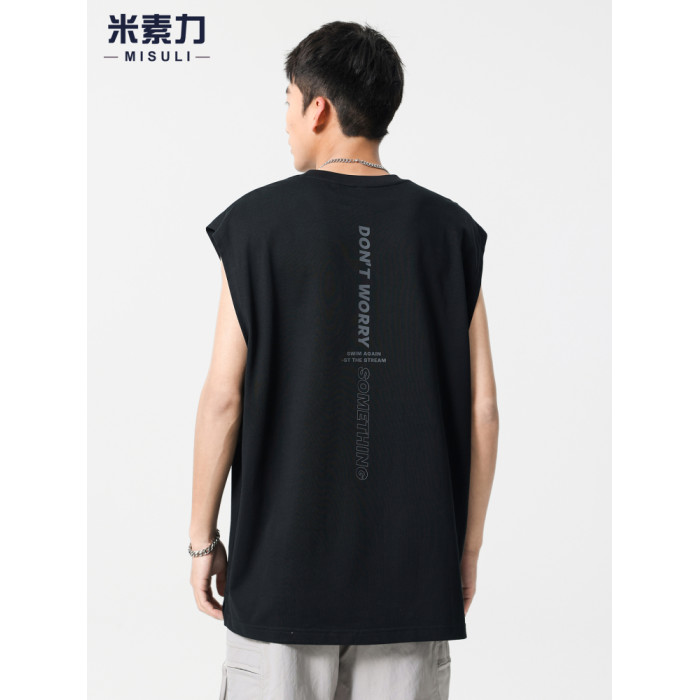 夏季透氣印花背心男ins潮流時尚百搭無袖T恤上衣涼感跨欄運動坎肩