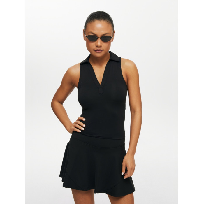 Oneup戶外翻領V領背心POLO春夏新款瑜伽運動健身帶胸墊外穿網球服