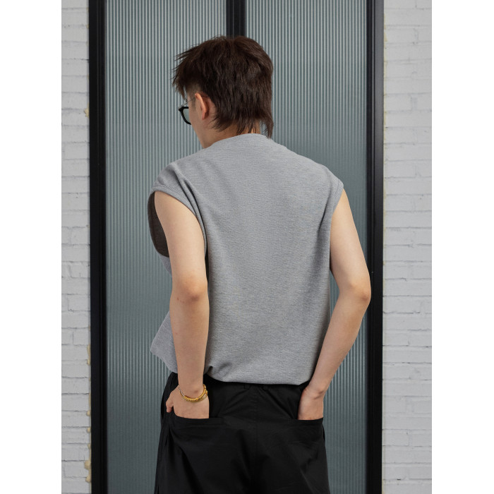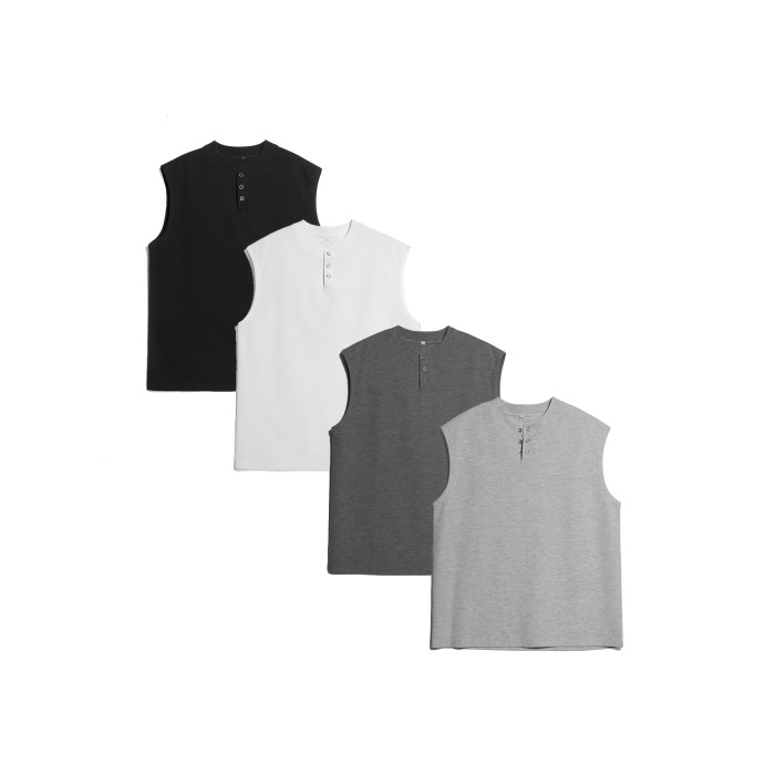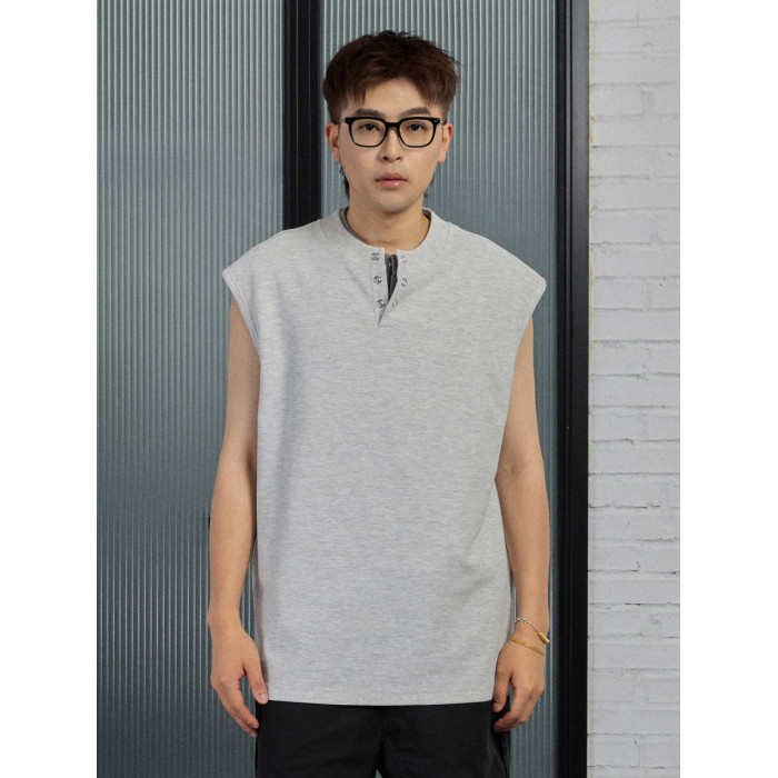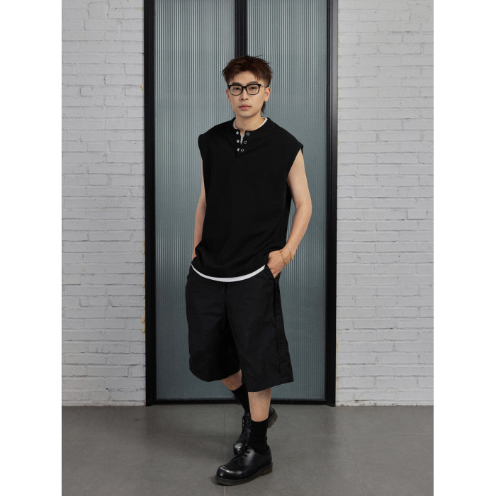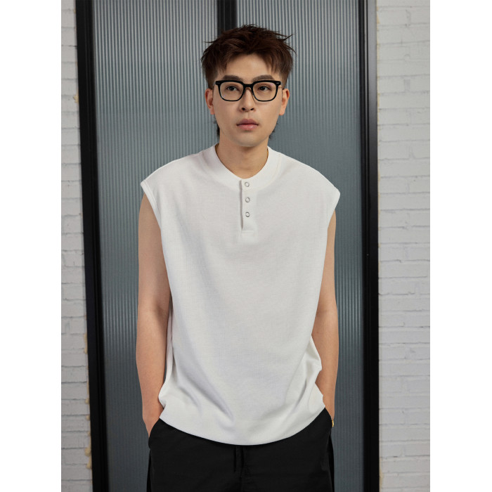 ESAT 亨利領三粒釦寬松基礎休閒坎肩背心 黑白灰