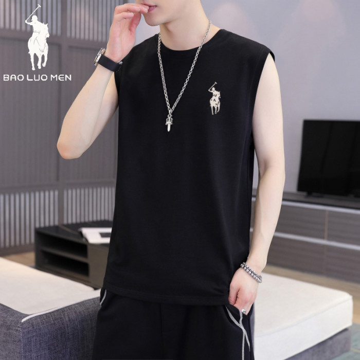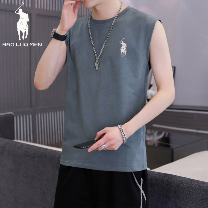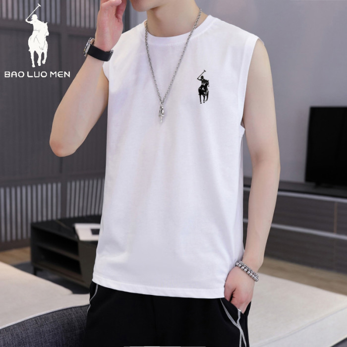 保羅門2024新款純棉背心男士夏季寬松外穿運動休閒薄款無袖T恤男
