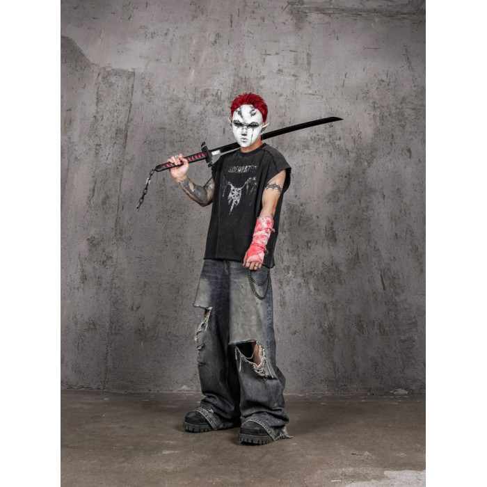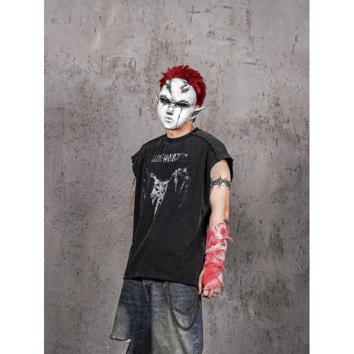 UNDERWATER S1 Hellbound Wing砂洗破壞惡魔骨印花解搆無袖背心