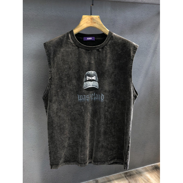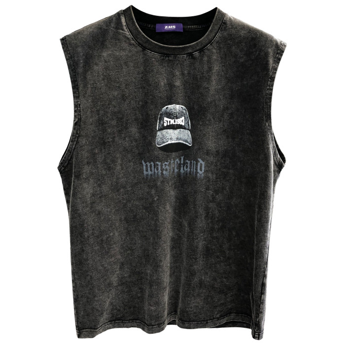 圈內高街重磅純棉水洗美式坎肩無袖T恤男士健身背心2025寬松體恤