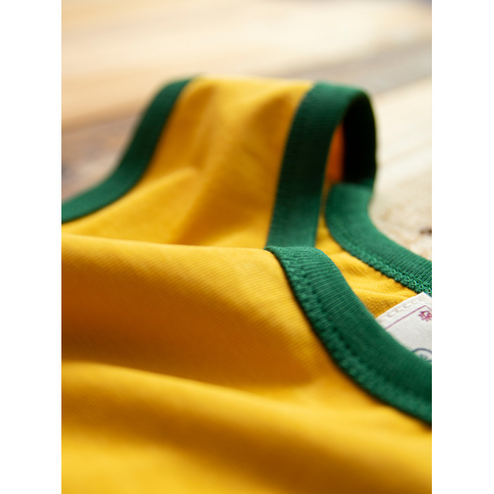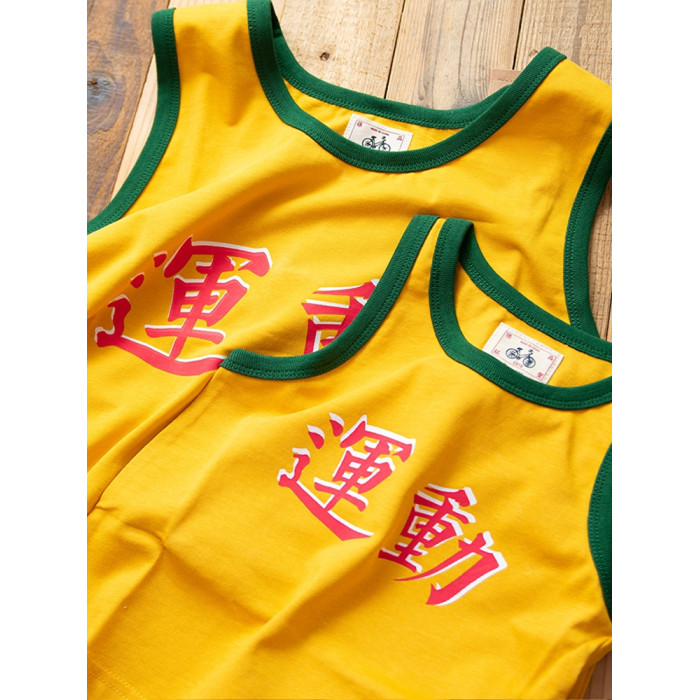 文化80年代重磅汗背心復古運動印花無袖坎肩男寬松全棉芥黃T