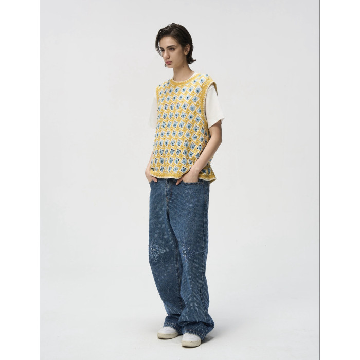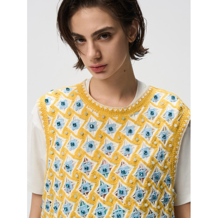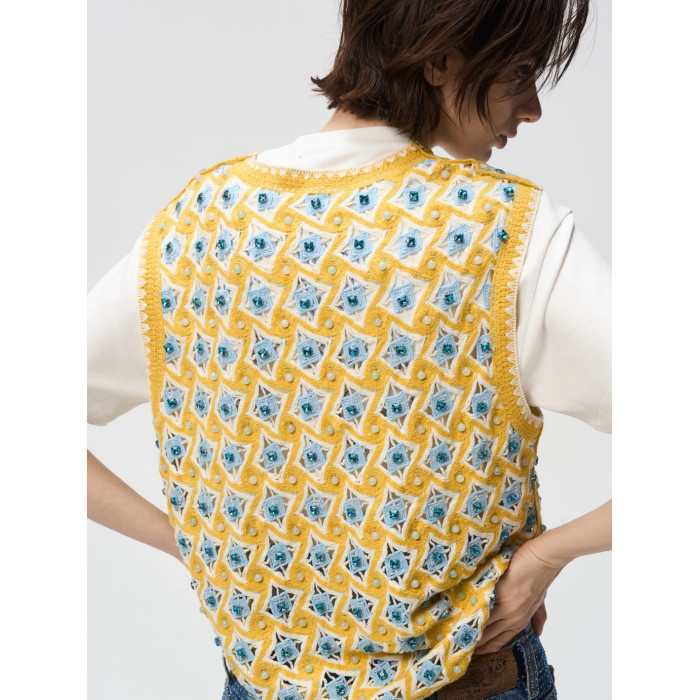 【SLUM炸】Birth of Royal Child度假風手縫藍鑽寶石針織背心borc