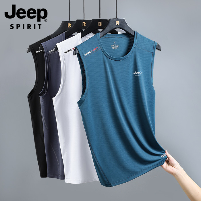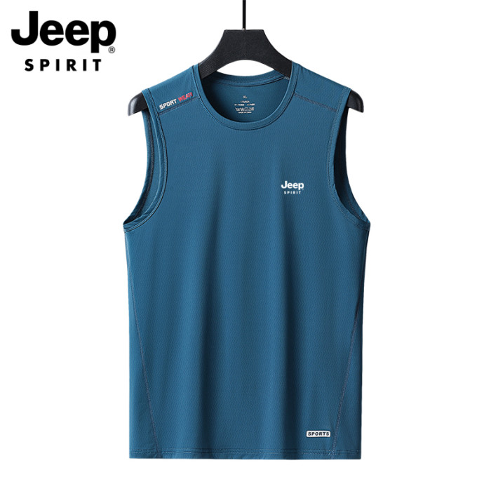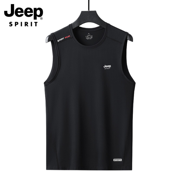 JEEP吉普背心男士夏季冰絲汗衫跑步健身運動大碼寬松無袖坎肩t恤