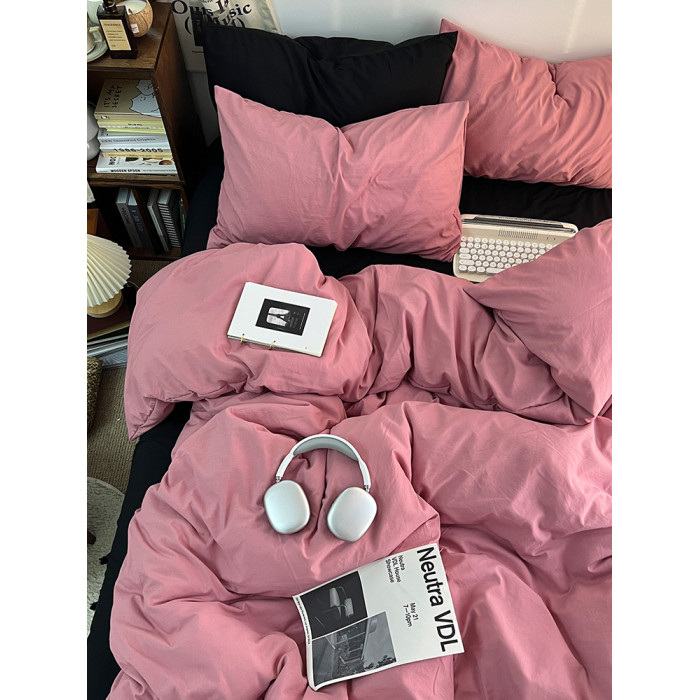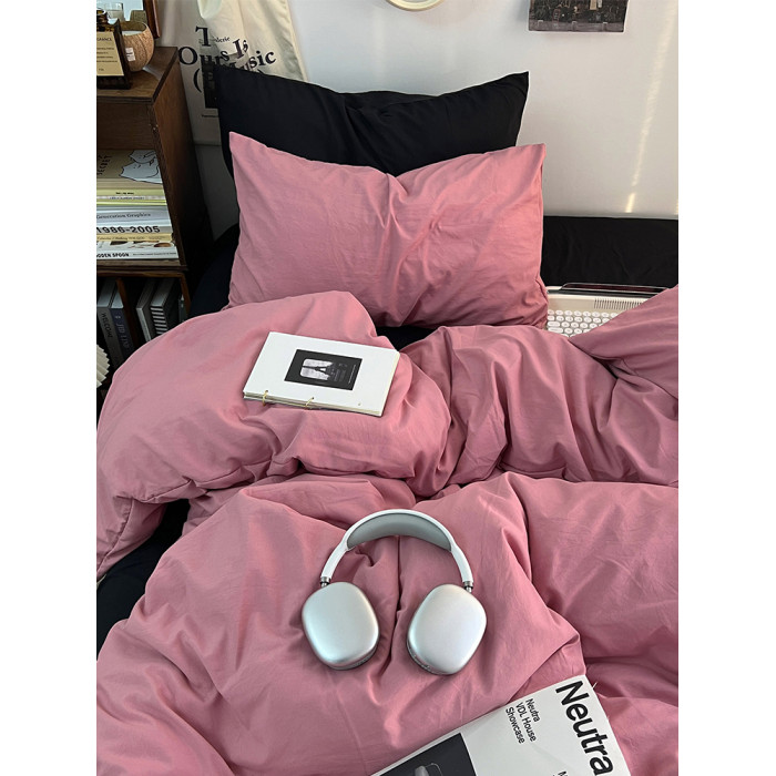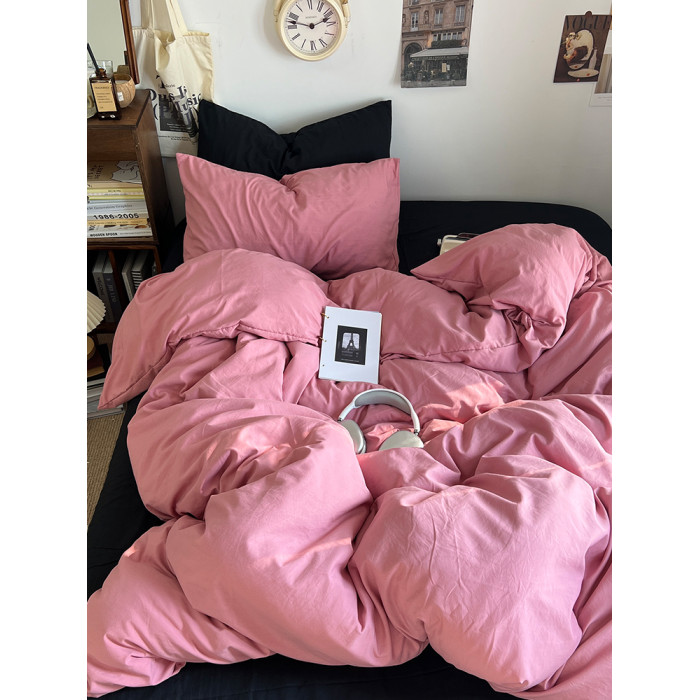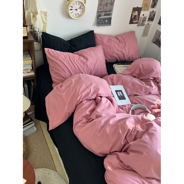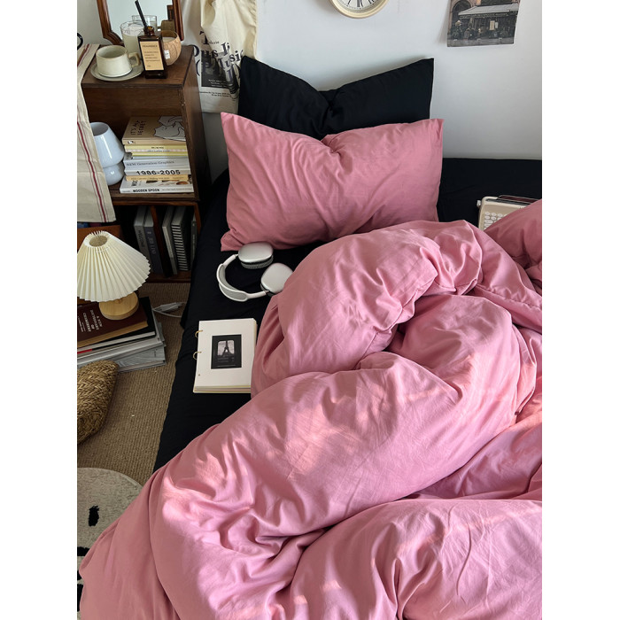 博主風ins黑粉混搭水洗棉床單四件套學生宿舍柔軟被套被單三件套