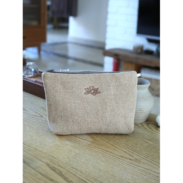 庸庸布包棉麻布包女帆布小零錢包化妝包女可攜式外出旅行大容量手拿