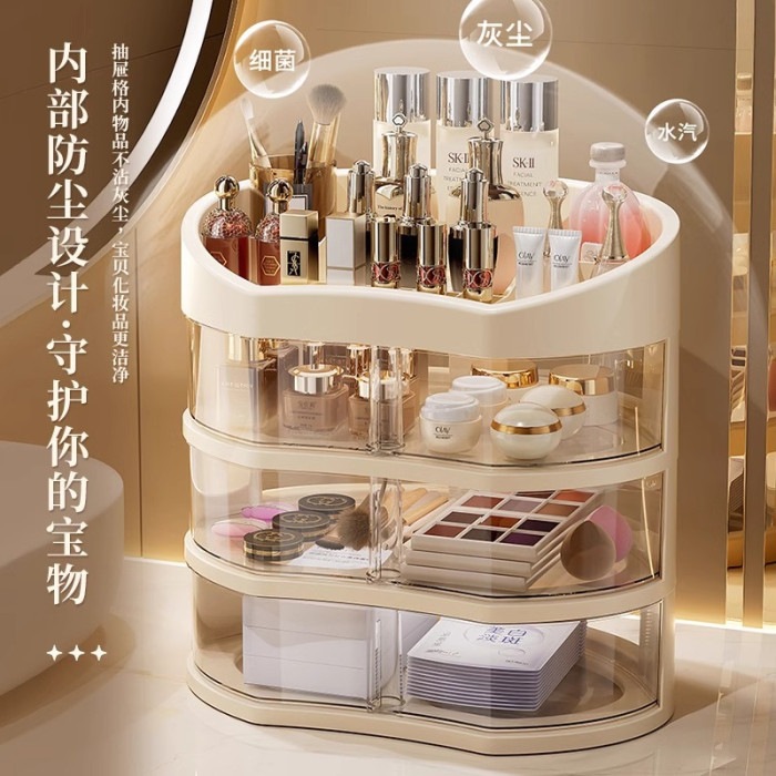 化妝品收納盒桌面整理防塵台面護膚品收納櫃置物抽屜大容量化妝盒