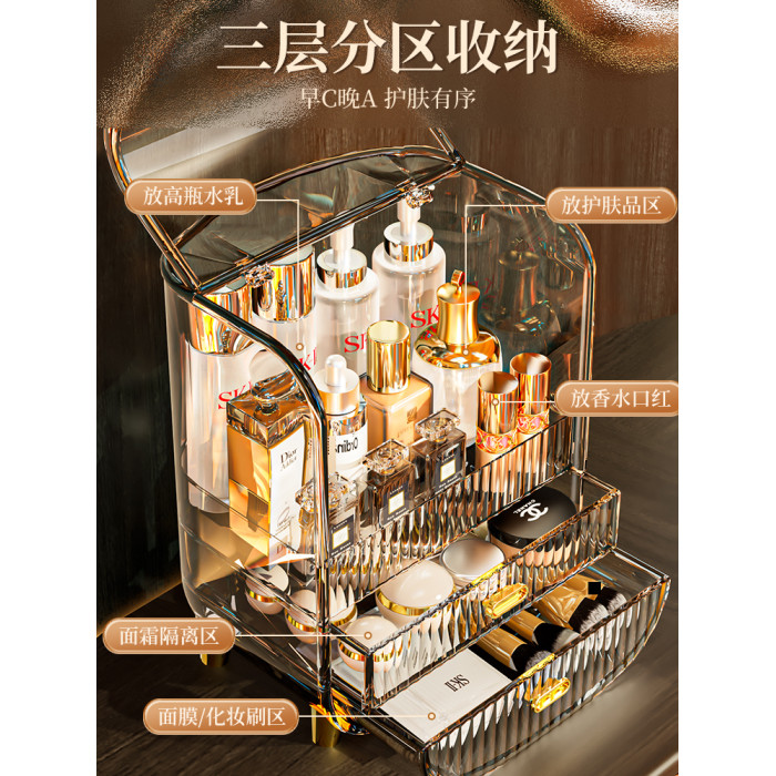 法國AL化妝品收納盒防塵護膚品桌面梳妝台亞克力面膜收納箱大容量