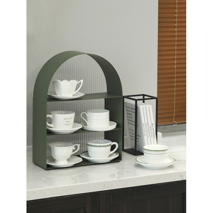 圓拱形杯子展示架 墨綠色拱門杯架 ins風化妝品收納架 桌面置物架
