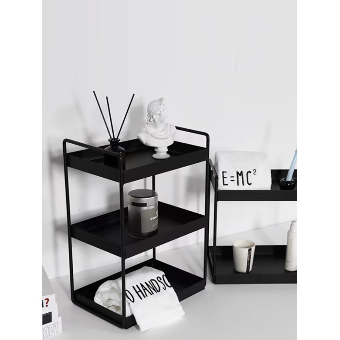 北歐簡約黑色化妝品收納架衛生間鐵藝置物架茶幾餐桌調料罐
