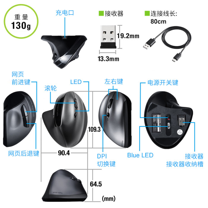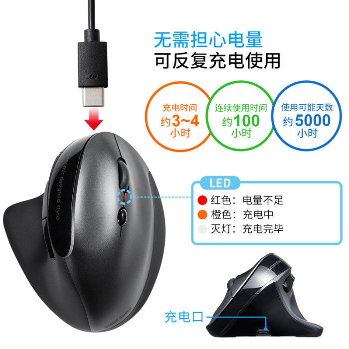 日本SANWA無線滑鼠充電男竪握人體工學靜音電腦辦公遊戯滑鼠女