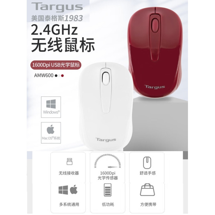 美國泰格斯Targus輕聲2.4G無線光電滑鼠W600辦公家用通用蘋果Mac