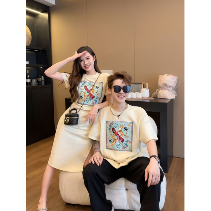 周嵗禮服親子裝一家三口風短袖母子母女國風新中式連衣裙旗袍
