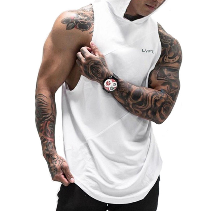 肌肉t恤兄弟健身訓練服連帽無袖運動男坎肩背心速乾透氣彈力帽衫