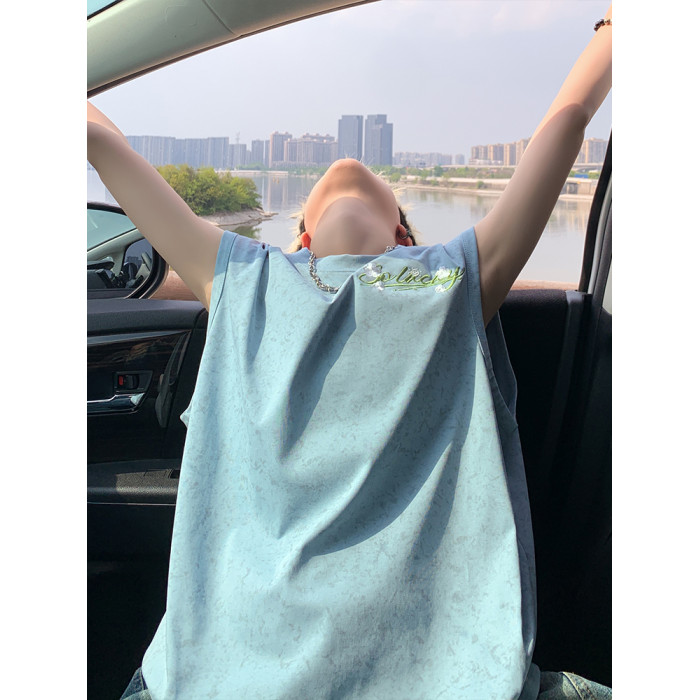 背心男孩青少年夏季薄款寬松無袖t恤男裝士潮牌運動健身坎肩汗衫