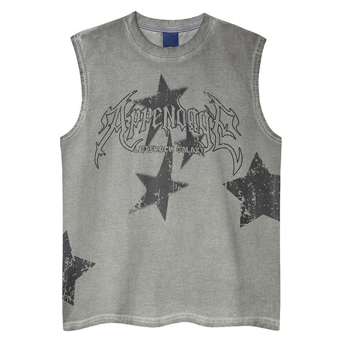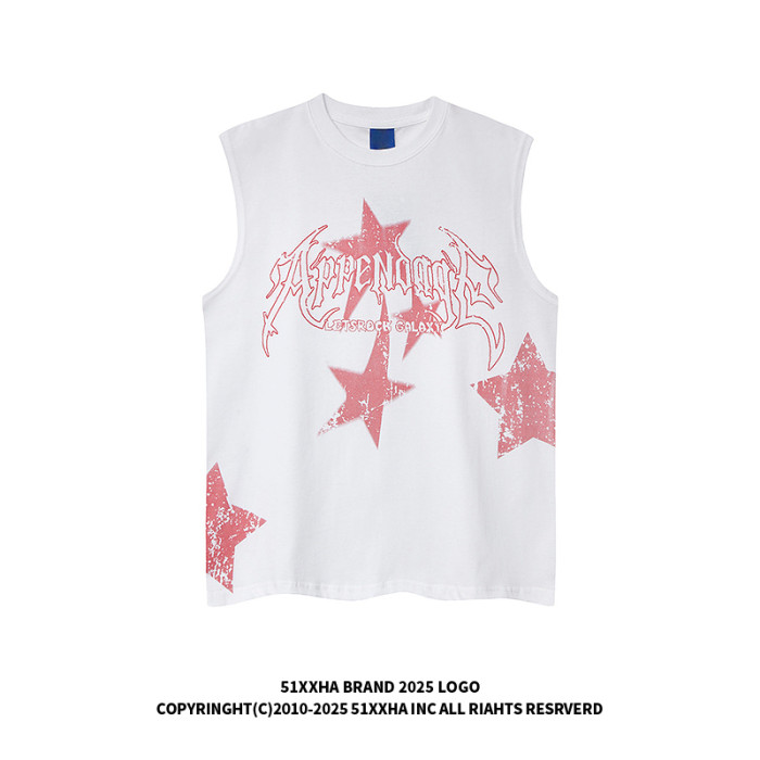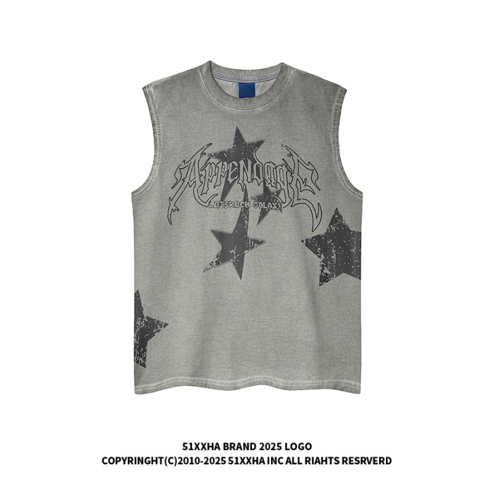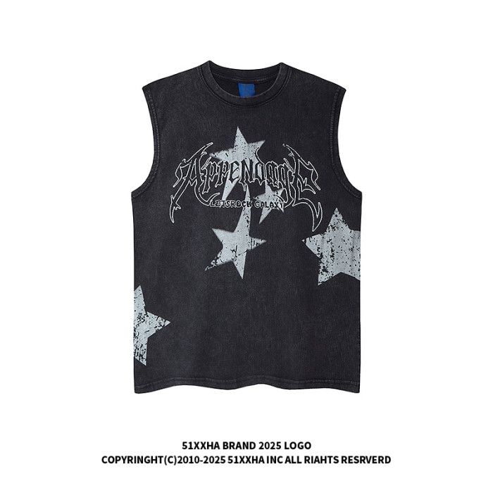 51嘻哈美式高街做舊字母印花無袖T恤夏季健身籃球運動坎肩背心男