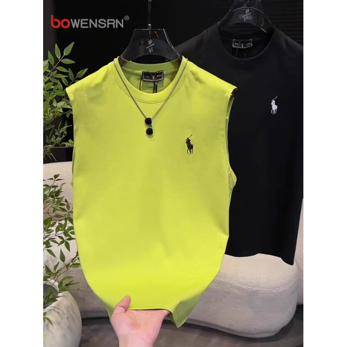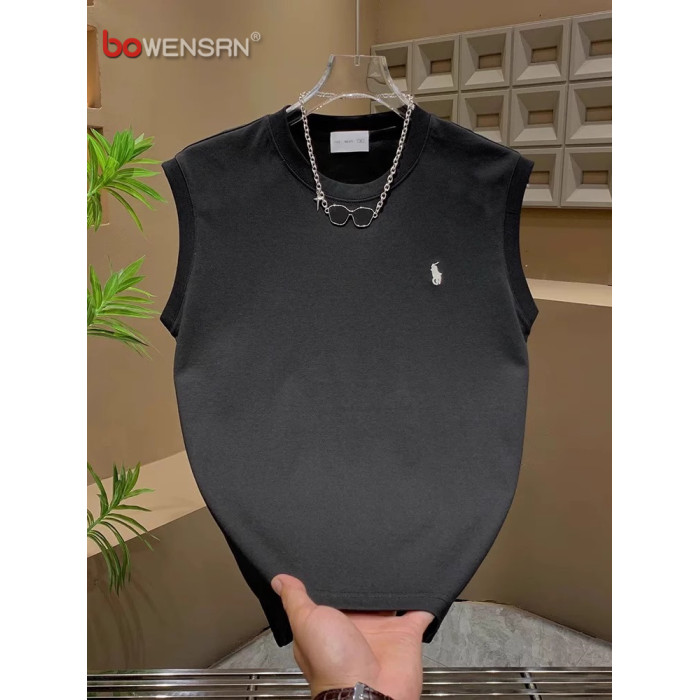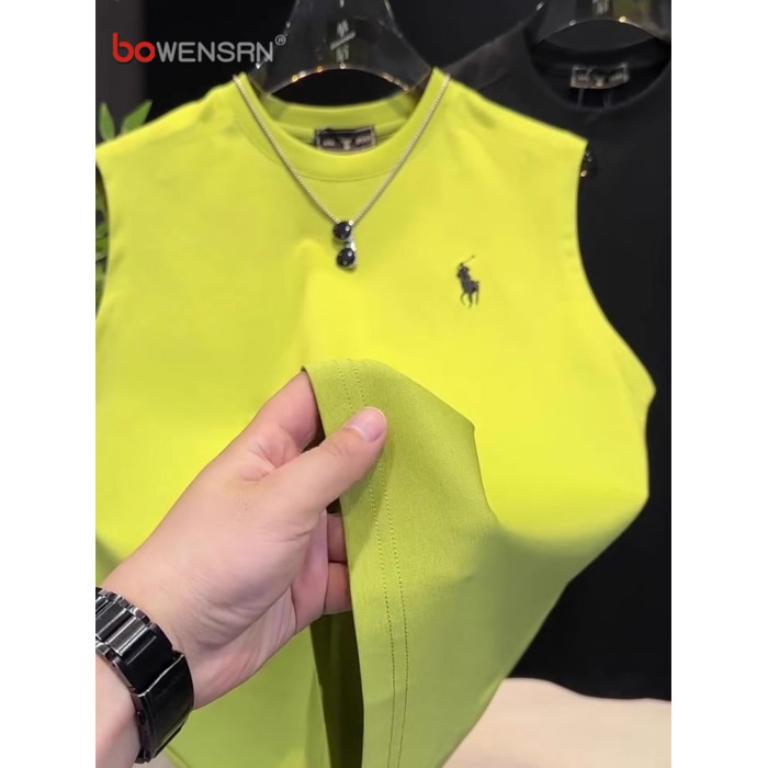 美式潮牌戰馬刺綉背心男士2025新款夏季保羅坎肩運動無袖t恤男款