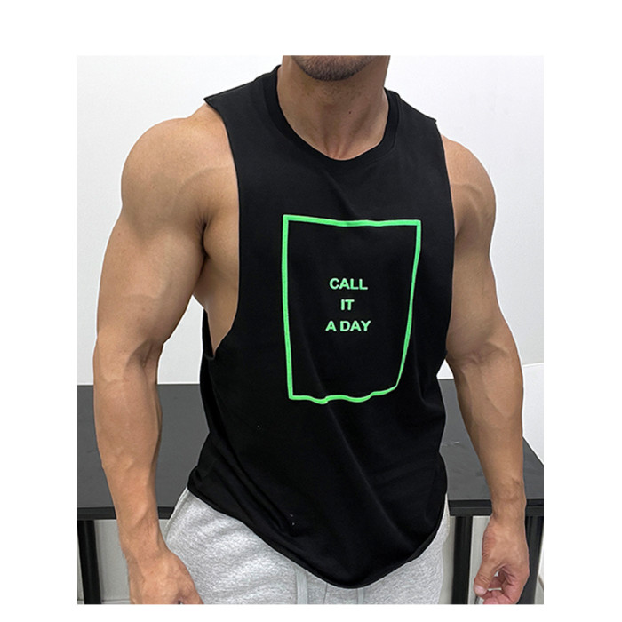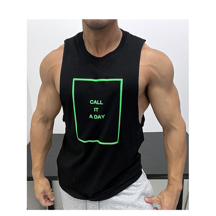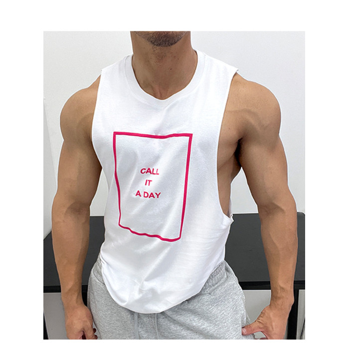 深挖純棉顯身材!體育生卷邊運動背心健身運動男潮修身無袖T恤性感