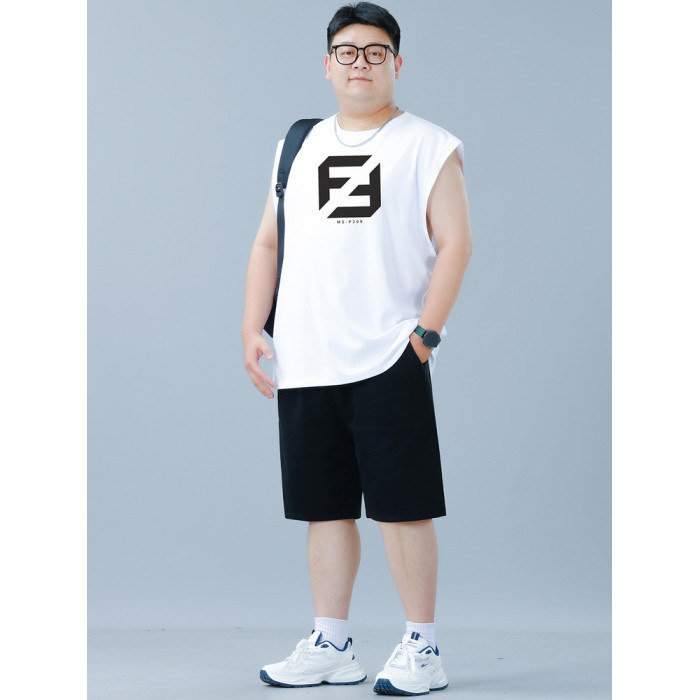大碼背心運動套裝男夏季美式潮牌籃球衣坎肩t恤休閒短褲搭配男裝