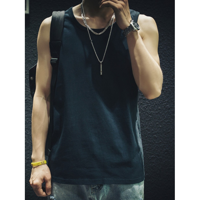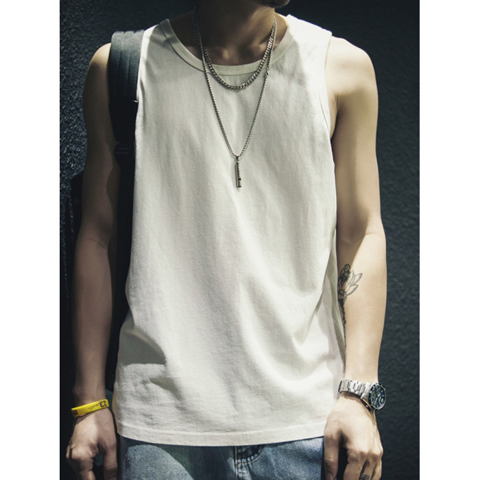專櫃純棉無袖t恤背心寬松坎肩潮牌外穿短袖生運動健身上衣潮夏季i