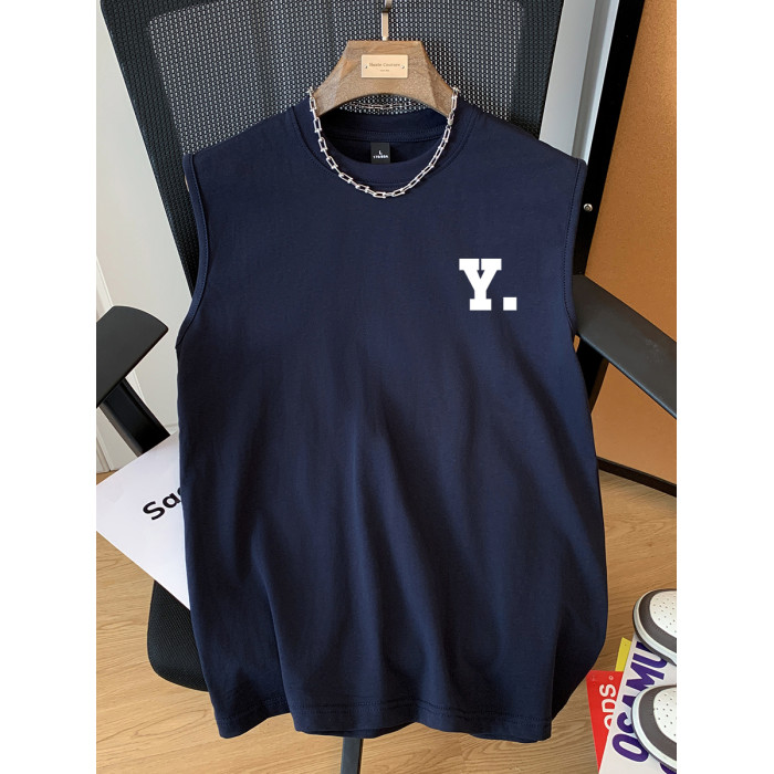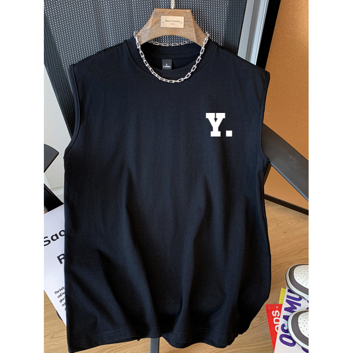 JIAF男生涼感雙紗無袖背心T恤260G重磅字母透氣百搭情侶簡約上衣