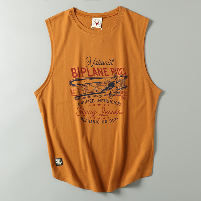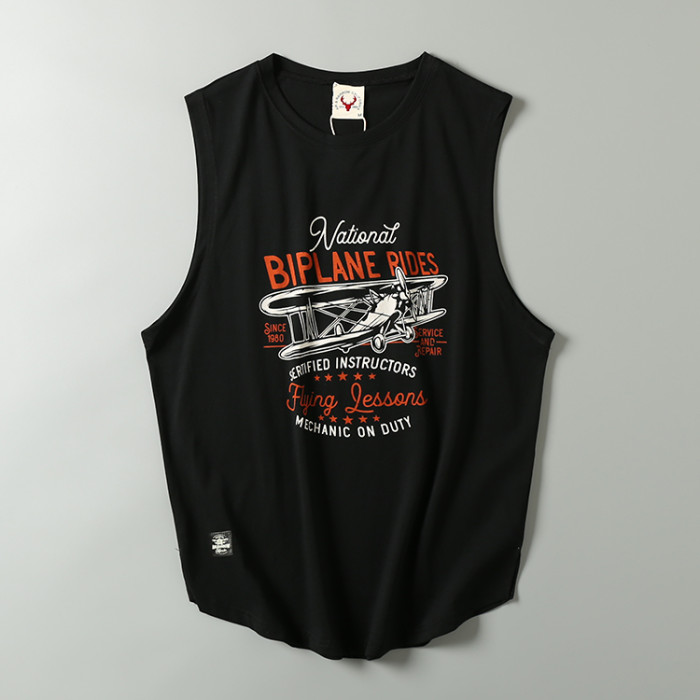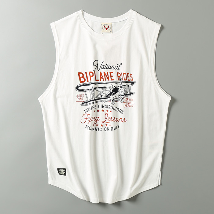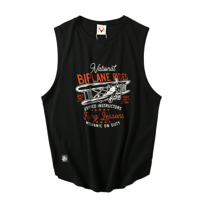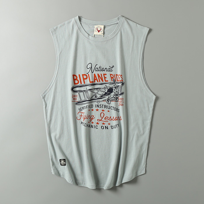 出口尾單夏季純棉涼爽汗背心牛貨無袖剪標印花休閒上衣潮
