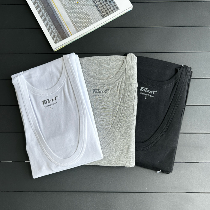 2件裝純棉春夏薄款細螺紋男基礎款背心打底內衣無袖汗衫跨欄