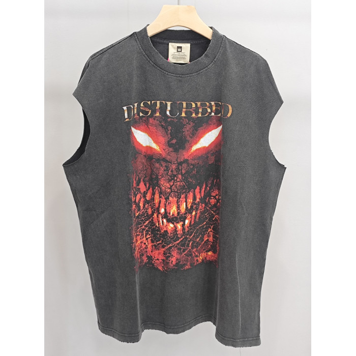 Saint搖滾殺手美式高街vintage水洗復古寬松VTG背心無袖T恤男女潮