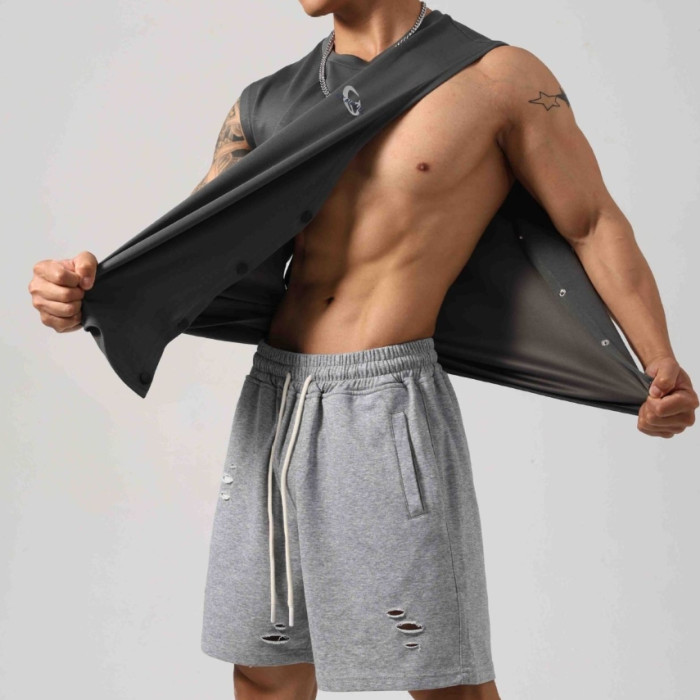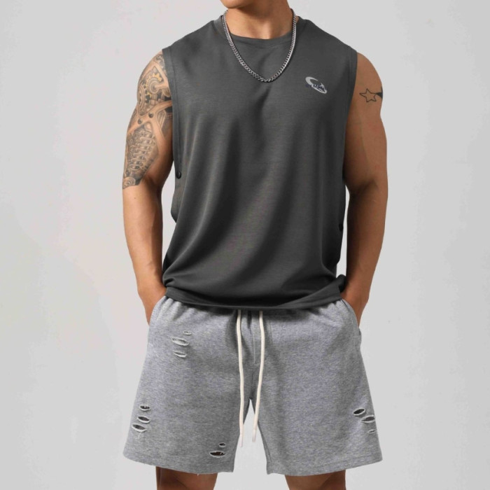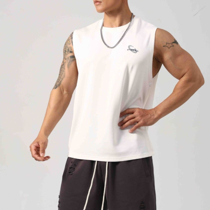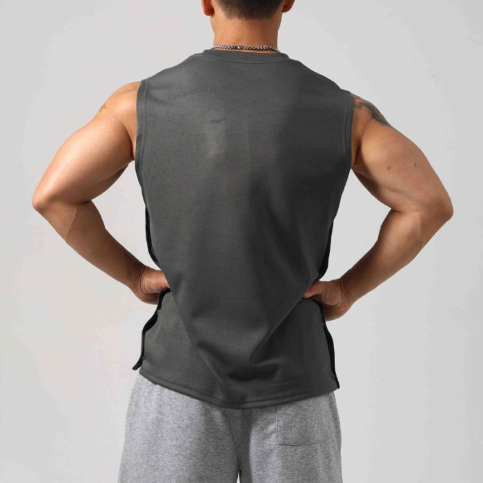 男士夏棉坎肩運動背心寬松上衣健身器械訓練無袖t恤直筒吸溼排汗T