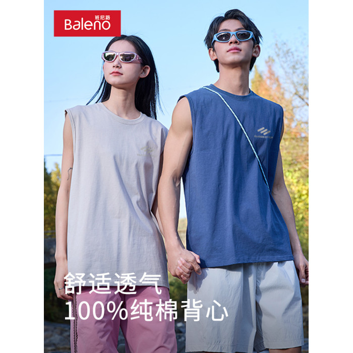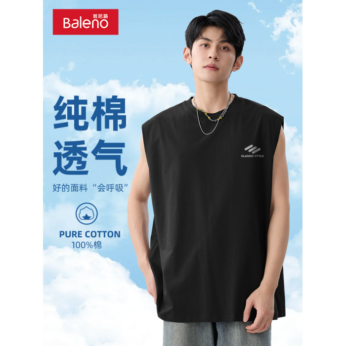 班尼路白色無袖t恤男夏季薄款運動健身坎肩寬松休閒外穿背心汗衫