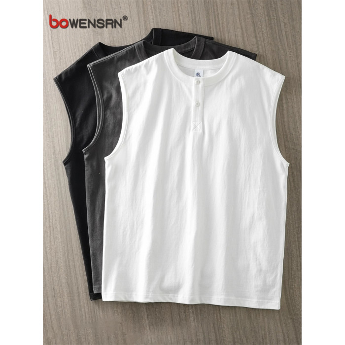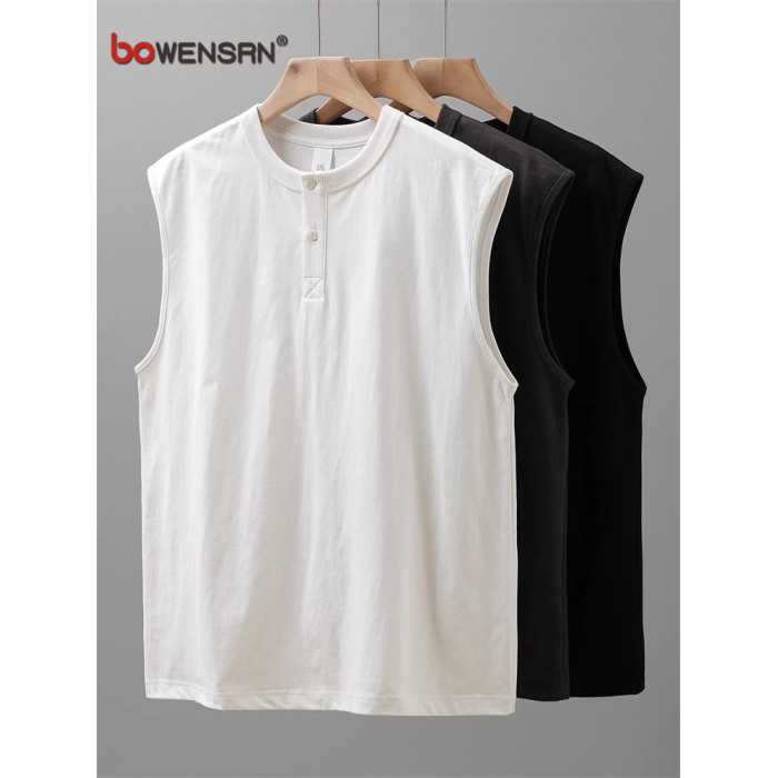 重磅亨利領背心男士無袖t恤2025新款夏季高級感坎肩運動上衣男款